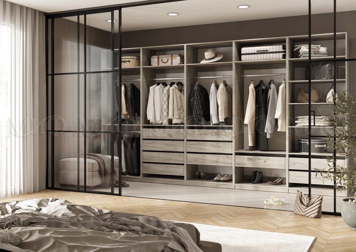Гардеробная/шкаф 4000 мм Ларго №1 открытая дуб крафт серый (Миф)