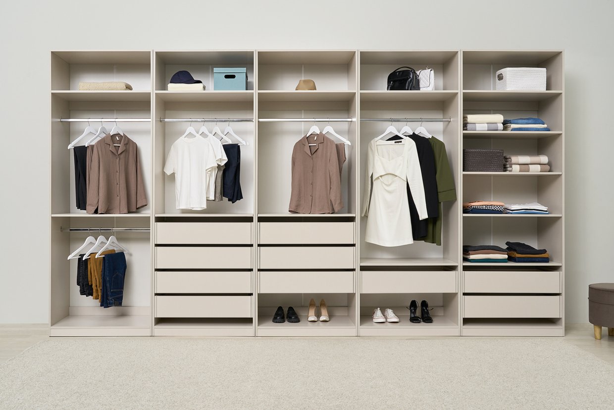 Гардеробная/шкаф 4000 мм Ларго №1 открытая Кашемир (Миф) в Югорске - yugorsk.mebel-e96.ru