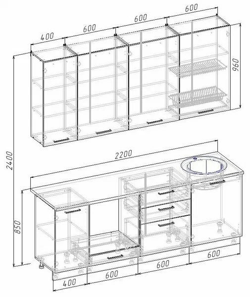 Артикул: A58430Кухонный гарнитур Пайн 2200 мм