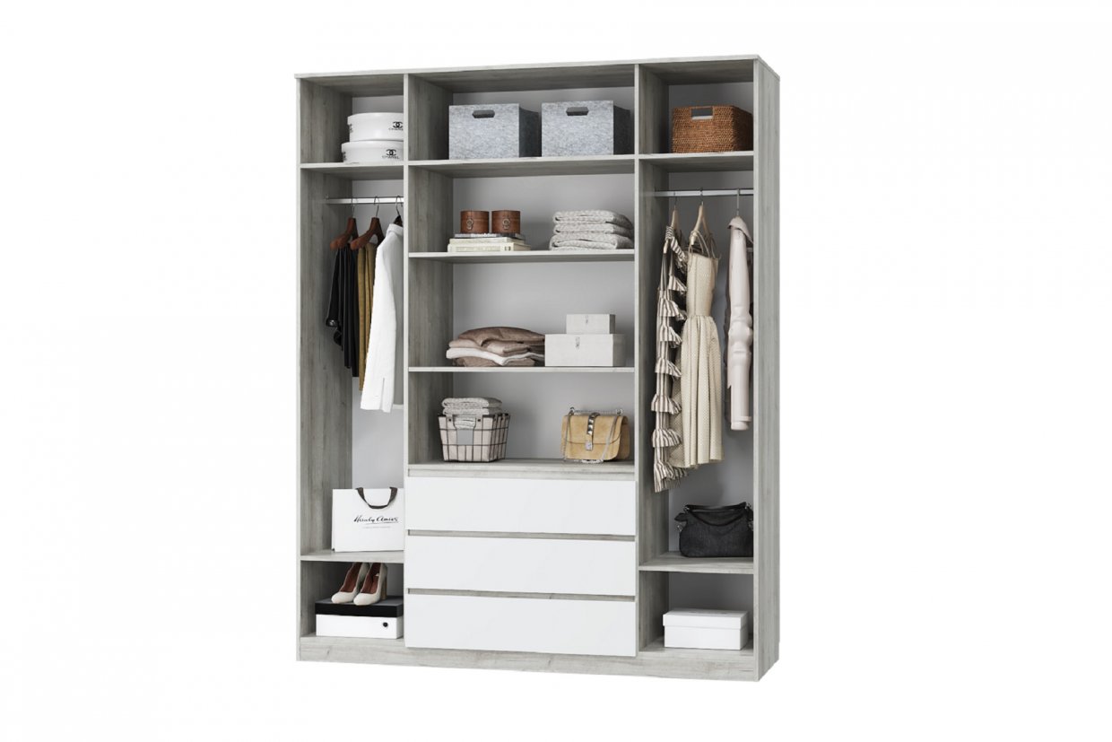 Шкаф 1360 мм для одежды 3х дв. с 3мя ящ. Лори (МЛК)